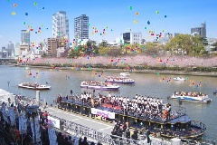 桜の季節の水都大阪で、「はちけんやお花見フェスタ」と題し、八軒家浜一帯でマーケットやアクティビティ体験会など、桜を楽しむ各種イベントが繰り広げられます。期間中は、大川さくらクルーズも運航しており、水上からの花見を満喫することができます。