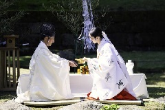 「曲水宴」とは、上流から流した酒盃が、前を通り過ぎないうちに和歌をつくり、盃を取り上げて酒をいただく風流な行事です。国指定名勝 仙巌園では大名庭園にふさわしく、参宴者は武家の正装で臨みます。島津家に伝わる風流な春の宴を、間近に見ることのできる年に一度の機会となっています。