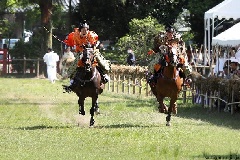 賀茂競馬(かもくらべうま)は、堀河天皇の寛治7年(1093年)より上賀茂神社に移された行事で、その様子は「徒然草」などにも書かれ、京都市の無形民俗文化財に登録されています。午前9時から頓宮遷御(とんぐうせんぎょ)や、菖蒲の根合せなどが行われ、左方は打毬(たぎゅう)、右方は狛鉾(こまぼこ)の舞楽装束を着けた乗尻(のりじり)が、馬に乗って社頭に参進します。勧盃、日形乗、月形乗、修祓、奉幣の儀を行った後、馬場にて2頭ずつ6組が競馳(きょうち)します。