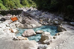黒部峡谷温泉峡の入口に位置する黒薙温泉。黒薙川沿いに高温の源泉が湧きあがり、河…