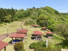 富山平野を一望するアウトドアフィールド。芝生広場、キャンプ場、バーベキュー棟な…