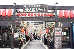 あわら湯のまち駅前にある屋台村。串揚げ、お好み焼き、焼き鳥、手羽先、手作りソー…