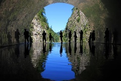 清流清津川の両岸にそびえる雄大な柱状節理の清津峡は、日本有数の景勝地。昭和24…