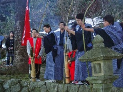 源氏に見立てた的に矢を射る行事「百手の儀式」が、毎年1月28日に平内神社で行わ…