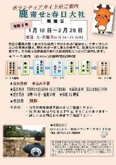 ボランティアガイドとともに、冬の奈良を楽しむウォーキングイベント「鹿寄せと春日…