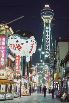 通天閣を中心とした一帯で、大阪の名物スポットの一つ。「二度づけお断り」の串カツ…