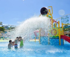 滑り台や巨大バケツで遊べるリニューアルした遊具付きの「わんぱくプール」をはじめ…