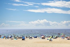 奥行き約200m、幅約1kmの美しい白浜と松林のパノラマビーチ。石や岩が少ない…