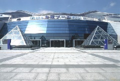 八幡屋公園の東に位置する、円盤状の構造物。メインとなる50mの公認プールと飛込…