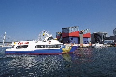 ユニバーサルシティポートから海遊館西はとば間を運航しているシャトルクルーザー。…