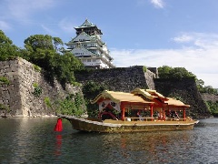 大阪城の内壕(うちぼり)を巡る観光船。お堀の水面から見上げる大阪城の雄大な景観…