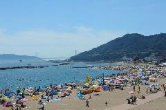 須磨海岸は、1.8kmの砂浜が続く、関西有数の海水浴場。「日本の渚百選」に選定…