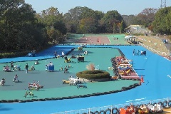 緑の樹林に囲まれた丘や大小の池が散在する自然豊かな公園。野球場、球技場などの運…