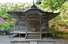 岩屋山に鎮座する真言宗の古刹。用明天皇の丁未年(587年)、聖徳太子が自刻の毘…