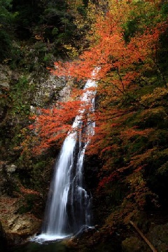 ブナ、モミジの原生林に囲まれ、原川の源流にかかる落差88mの滝。雄滝と雌滝とが…