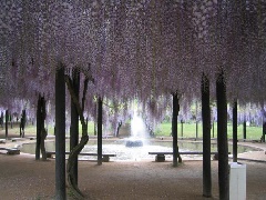 公園面積7000平方m、藤棚総延長500mの山陰随一の藤公園。幅4mの藤棚には…