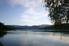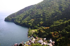 天女の羽衣や龍神・菊石姫の伝説が残る神秘の湖。面積約1.8平方km、周囲約6.…