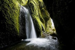 小又川渓谷にある名瀑。滝水に岩漿が浸食されてできた約20平方mの洞窟の内部に滝…