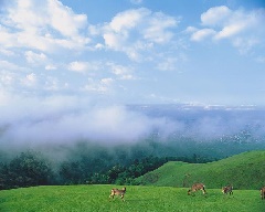 おわんを伏せて3つ重ねたような、芝生に覆われた山。山頂には、5世紀頃築造の史跡…