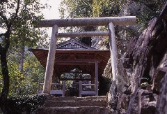 吉野川右岸、ほぼ垂直に切り立った断崖にたつ神社。旧正月の14日に行われる国栖奏…