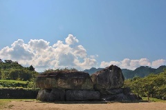 巨石30個を積み上げて作られた石室古墳。7世紀初め頃の築造で規模は日本最大級を…