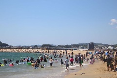 砂浜が扇形をしていることから、「扇ヶ浜」と称されるファミリービーチ。更衣室、シ…