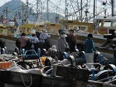 タチウオの漁獲量では日本一を誇る。午前3時頃出航し、午後3時頃に帰港する漁船を…