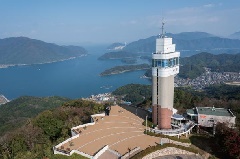 五老ヶ岳にそびえる高さ50mの展望タワー。海抜325mの展望室からは、「近畿百…
