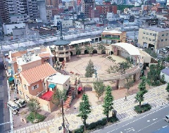 オーケストラ演奏も可能な屋外大型ステージを併設し2階建ての回廊で囲まれた直径4…
