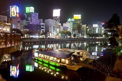 博多の夜の顔、中洲に面した那珂川を屋形船でめぐる。本格和風作りの和船と、シック…