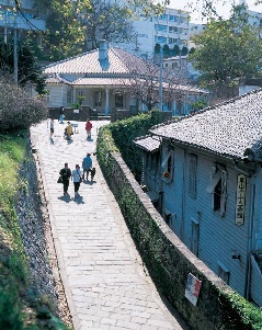 異国情緒漂う旧居留地の坂。居留地時代、長崎の人々は西洋人を「オランダさん」と呼…