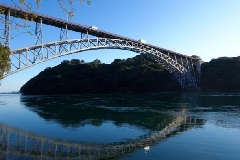 大村湾と外海をつなぐ針尾瀬戸に架かる長さ約300mのアーチ橋、「西海橋」の両岸…