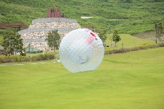 多彩な遊具を配置した総合公園。球体(外球3.2m、内球1.8m)の中に入り斜面…