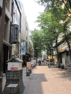 下通(しもとおり)と交わる戦前からの商店街で、欅並木沿いに飲食店などが集まって…