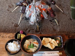 明治の風情を残したお座敷で、高森の郷土料理・田楽が味わえる。芋やコンニャク、豆…