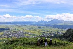 県道339号(通称:ミルクロード)沿いにある展望所。阿蘇五岳(根子岳、高岳、中…