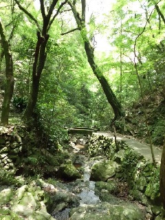 臼杵市内の山間にある紅葉の名所。江戸時代に、橋本主馬介真彦が、緑の茂みに囲まれ…