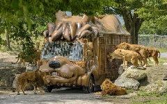 広大な自然の中で、70種1400頭の動物が生活している。マイカーでゾウやキリン…