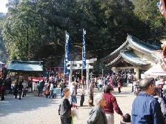 天照大神を祀る神社で、社殿背後を流れる岩戸川断崖の中腹に、弟の素差男命の乱暴に…