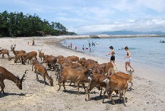 阿久根市街地の沖合2kmに浮かぶ周囲4kmの島で、約120頭の野性の鹿が生息し…