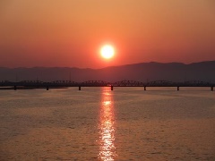 日没にあわせて茜色に染まる雄大な吉野川を巡る、約60分間のクルージングです。西…