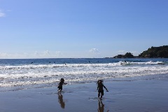 四国屈指の遠浅の砂浜海岸で、岸から沖合に約50m程浅瀬が続く。海岸緑地は「高知…