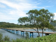 増水時、川に沈んでしまうため、水の抵抗を少なくするように設計された欄干のない橋…