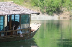 日本一の水質の良さから、「奇跡の清流」と称される仁淀川を運航する屋形船。乗船場…