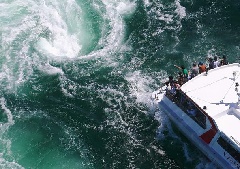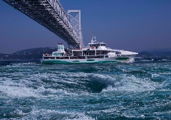 世界最大級の鳴門の渦潮を観賞する遊覧船。大型観潮船「わんだーなると」は、渦潮の…