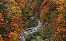 大町市の西部、槍ヶ岳を水源とする高瀬川の渓谷沿いに湧く葛温泉。慶応3年(1867年)凶作のおりに、葛を探しに分け入った里人が発見したという古い歴史を持つ。毎分1500リットルの豊富な湯量を持ち、木崎湖温泉、大町温泉郷の元湯にもなっている。一帯は奇岩怪石が連なる渓谷美で知られており、夏は北アルプス登山の基地として賑わっている。