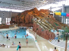 室内温水プールの面積が、約3880平方mもある施設。奥行約40mの地中海をイメージした波のプールをはじめ、競泳コースのある25mプール、流れるプール、チューブスライダー、幼児用プールなど、小さな子どもから、健康維持や体を鍛えたい人まで、あらゆるニーズに対応できるプールが揃う。アクアビクス、スイムレッスンなどの各種教室も開催している。