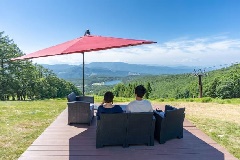 蓼科牧場から御泉水自然園へ、ペットと一緒に楽しめるゴンドラリフト。山頂には、女神湖から北アルプスまでを一望できる「女神のテラス1830」があり、白樺高原を見渡す景色を堪能できる。