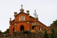 五島列島の北に位置する野崎島には、江戸時代後期に野首と舟森のキリシタン集落があった。島の中央部の野首地区には、対岸の外海(そとめ)から渡った信者が住みつき、1908年にリブ・ヴォールト天井を持つ現存の旧野首教会が建てられた。一方、島の南部の舟森地区には、小値賀の船問屋の働きにより大村藩から逃がれた3人のキリシタンによる集落が生まれ、1882年に瀬戸脇教会ができた。野崎島は現在ほぼ無人で、当時の信者らがキビナゴ漁で資金を貯めて建てた美しいレンガ造りの旧野首教会がひっそりと佇む。教会は、1989年に長崎県の有形文化財に指定され、2011年に国が選定した「小値賀諸島の文化的景観」に含まれる。2018年に世界遺産登録された「長崎と天草地方の潜伏キリシタン関連遺産」の構成資産のひとつ。