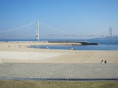 明石海峡に臨む絶好のロケーションの海浜公園。明石海峡大橋の眺めが素晴らしく、散歩やジョギング、海釣りなどが楽しめ、JR朝霧駅南側すぐという交通アクセスも良いことから多くの人が訪れる。人工芝のフットサルコートが3面ある「多目的広場」や、東西の2か所の駐車場を完備(いずれも有料)するほか、夏季には海水浴場を開設。年4~5回のフリーマーケットや各種スポーツ大会など、年間を通じてイベントも開催している。